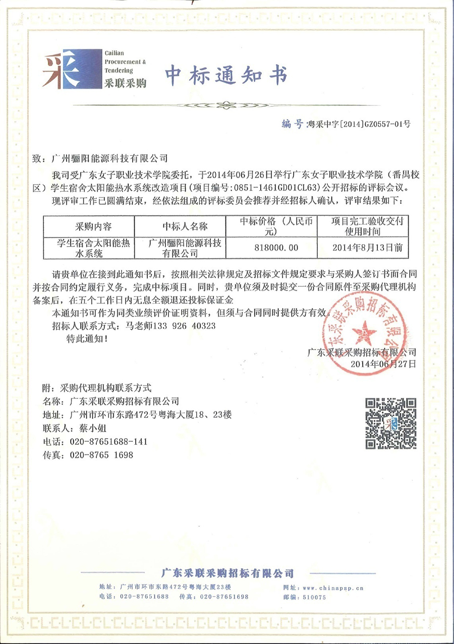 廣東女子職業(yè)技術學院學生宿舍太陽能熱水系統(tǒng)