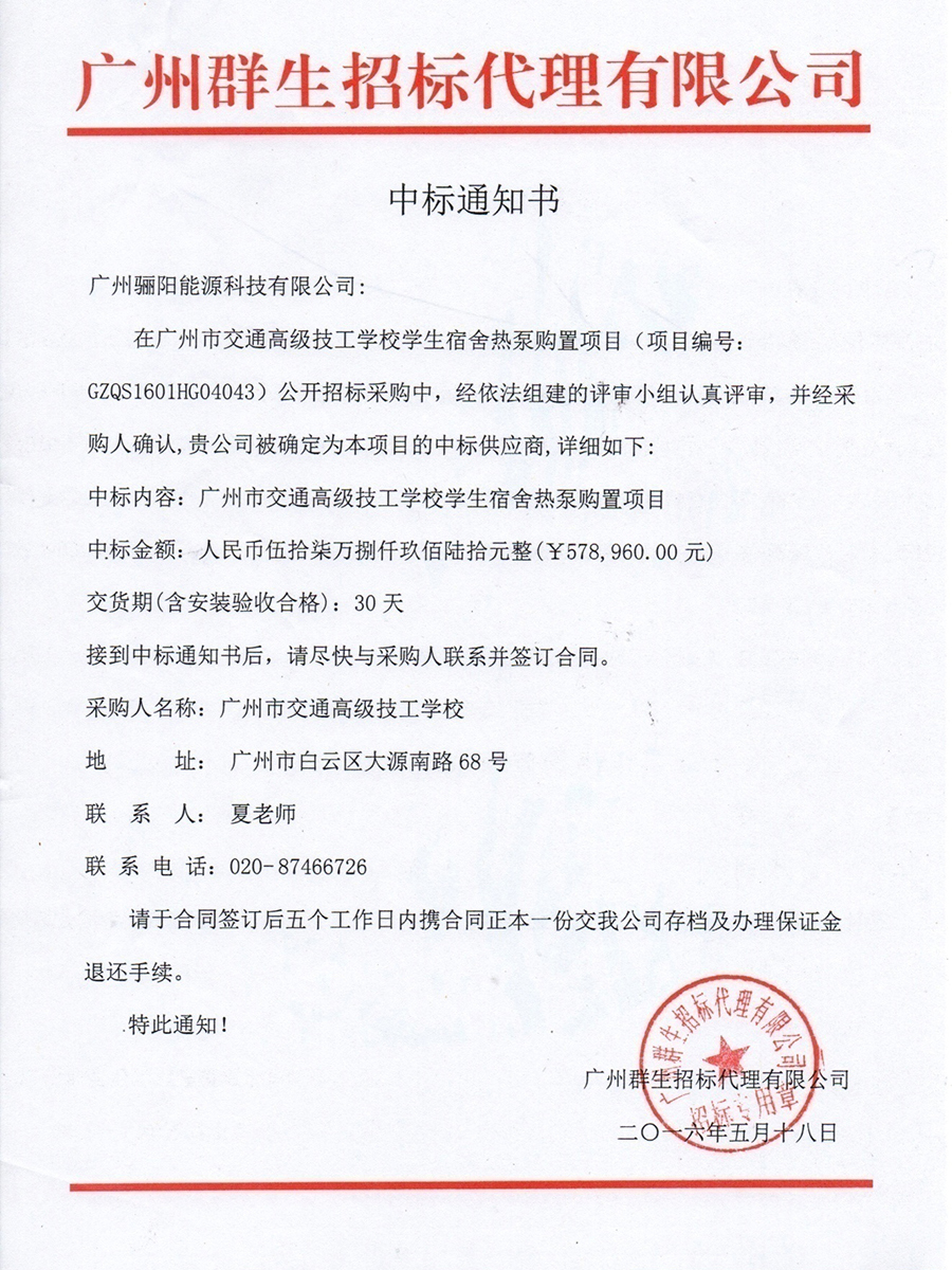 廣州市交通高級(jí)技工學(xué)校學(xué)生宿舍熱泵購(gòu)置項(xiàng)目